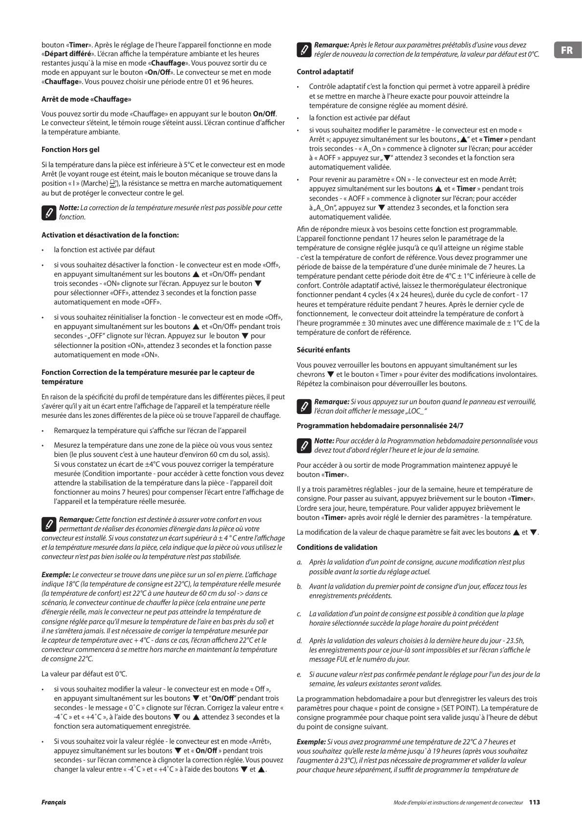 Mode d’emploi et instructions de rangement de convecteur 113Français