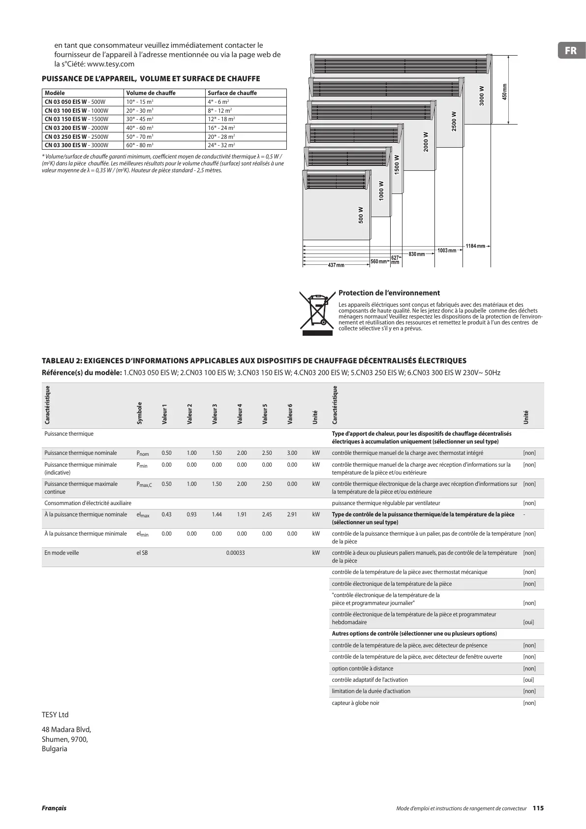 TABLEAU 2: EXIGENCES D‘INFORMATIONS APPLICABLES AUX DISPOSITIFS DE CHAUFFAGE DÉCENTRALISÉS ÉLECTRIQUES
