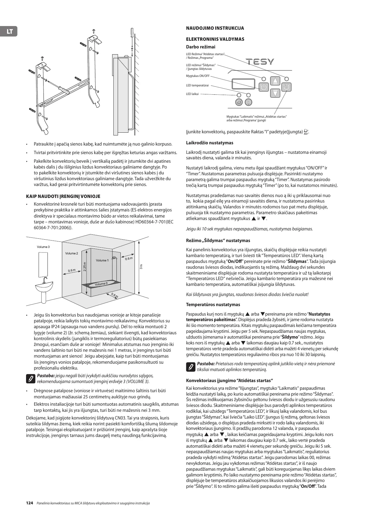 • Konvektorinė krosnelė turi būti montuojama vadovaujantis įprasta