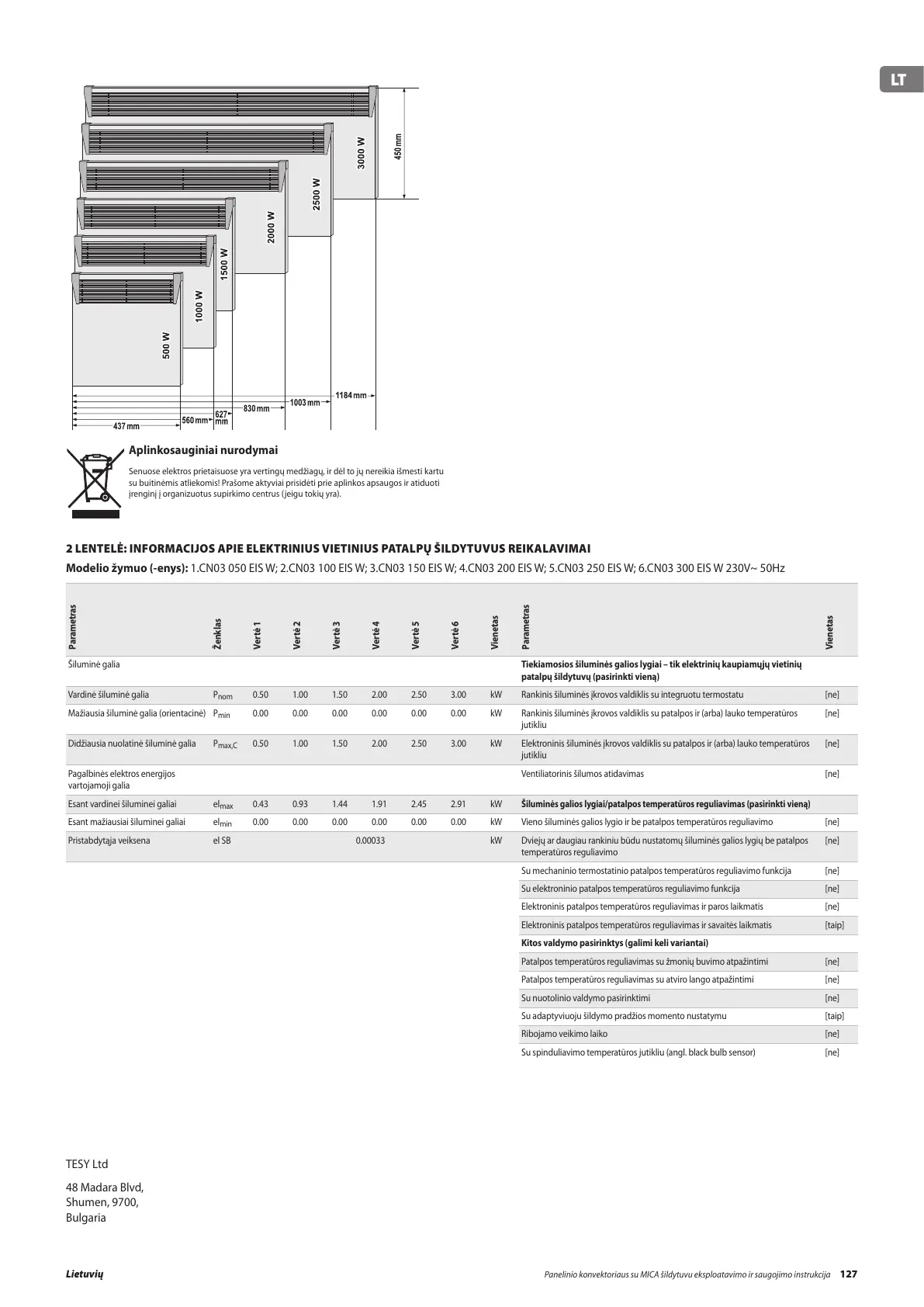 Panelinio konvektoriaus su MICA šildytuvu eksploatavimo ir saugojimo instrukcija 127Lietuvių
