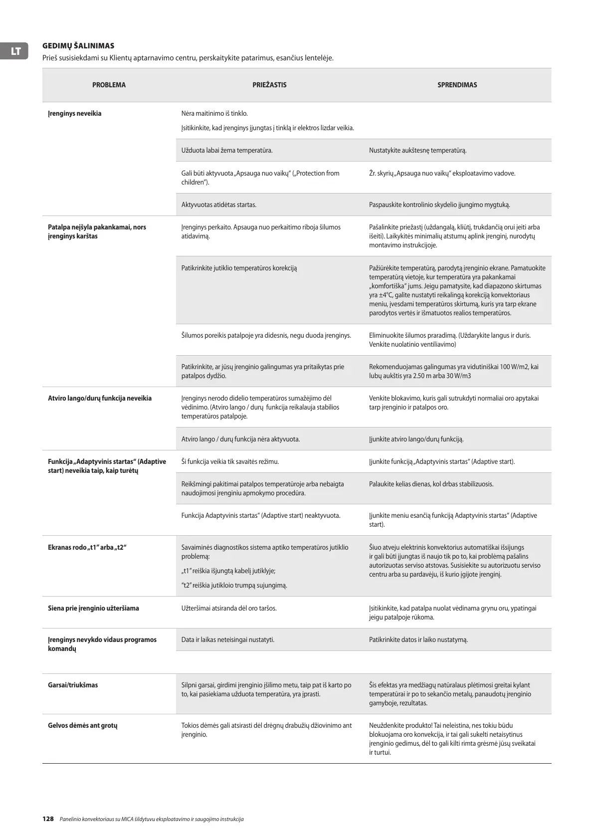 128 Panelinio konvektoriaus su MICA šildytuvu eksploatavimo ir saugojimo instrukcija