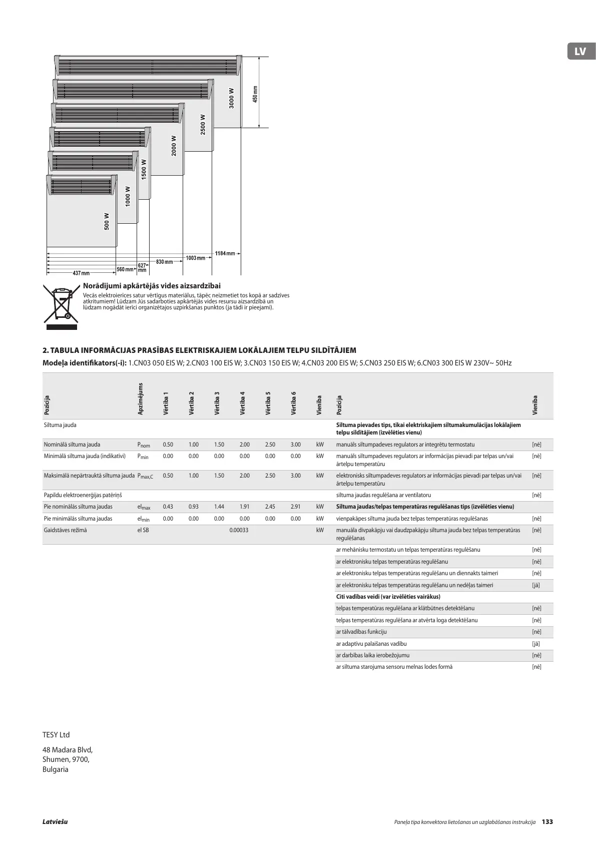 Modeļa identifikators(-i): 1.CN03 050 EIS W; 2.CN03 100 EIS W; 3.CN03 150 EIS W; 4.CN03 200 EIS W; 5.CN03 250 EIS W; 6.CN03 300 EIS W 230V~ 50Hz