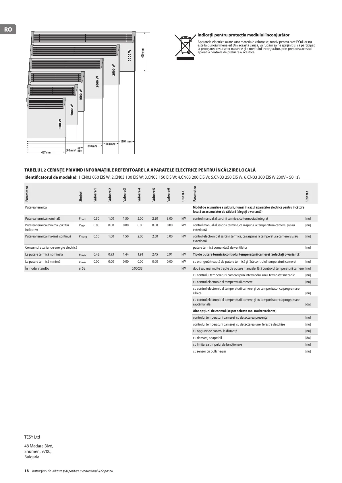 Identificatorul de model(e): 1.CN03 050 EIS W; 2.CN03 100 EIS W; 3.CN03 150 EIS W; 4.CN03 200 EIS W; 5.CN03 250 EIS W; 6.CN03 300 EIS W 230V~ 50Hz\