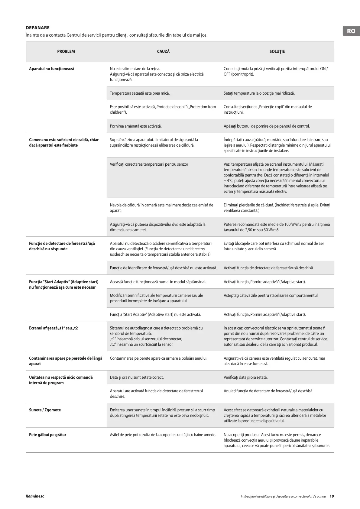 Instrucţiuni de utilizare şi depozitare а convectorului de panou 19Românesc