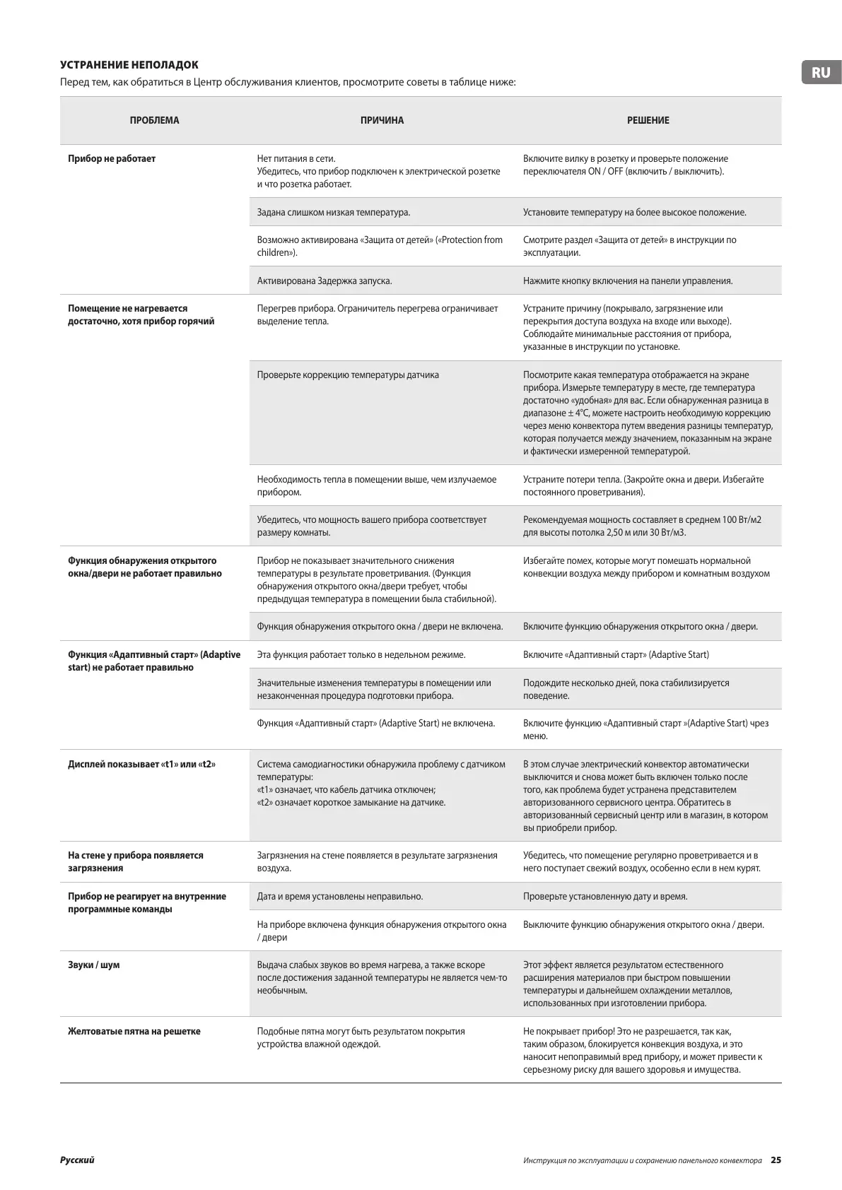 Инструкция по эксплуатации и сохранению панельного конвектора 25Русский