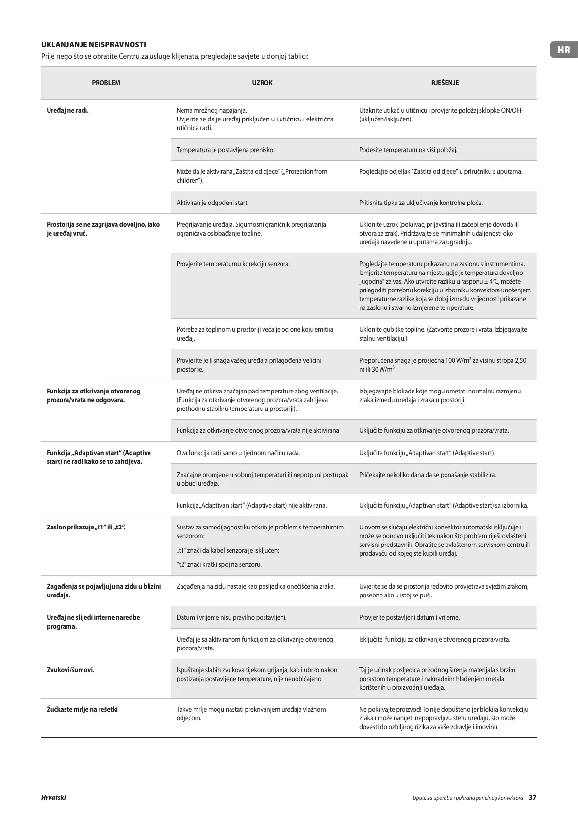 Upute za uporabu i pohranu panelnog konvektora 37Hrvatski