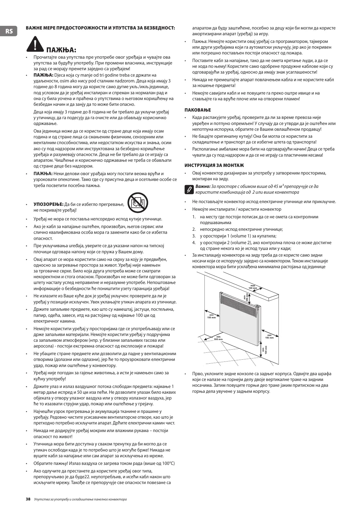 38 Упутства за употребу и складиштење панелног конвектора
