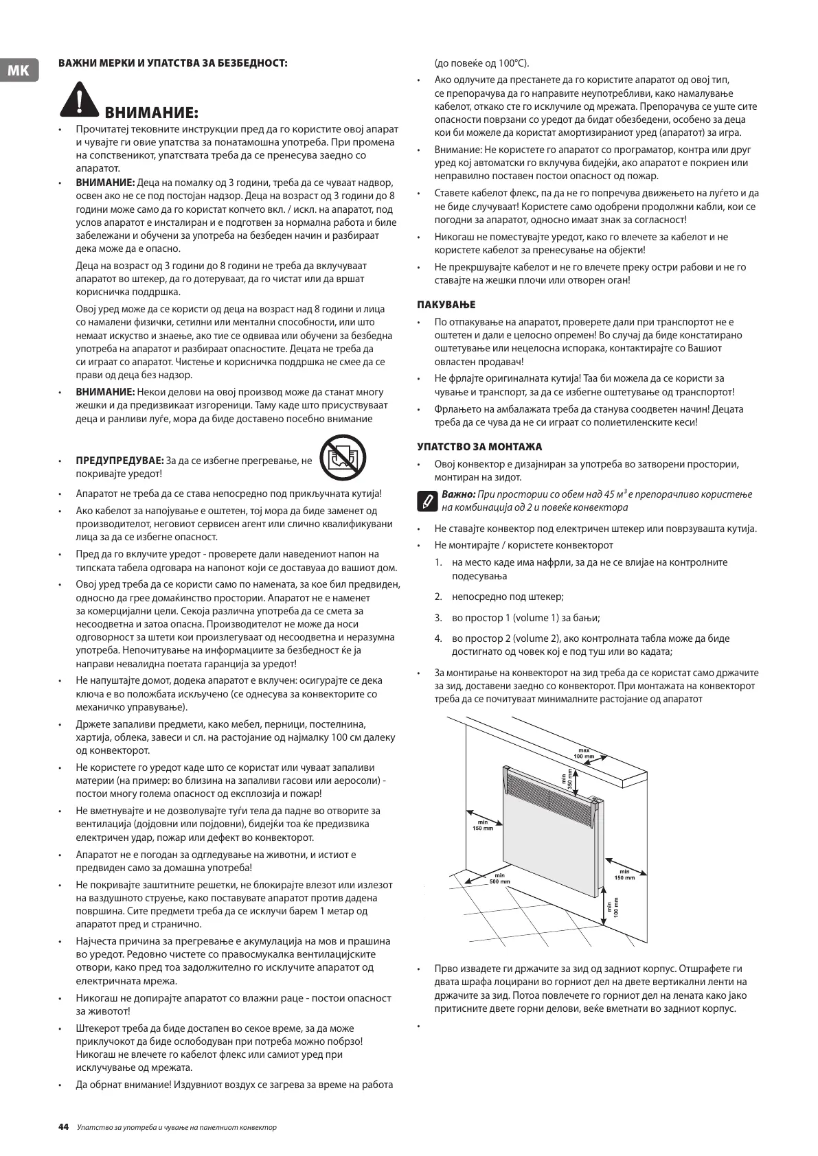 • Овој конвектор е дизајниран за употреба во затворени простории,