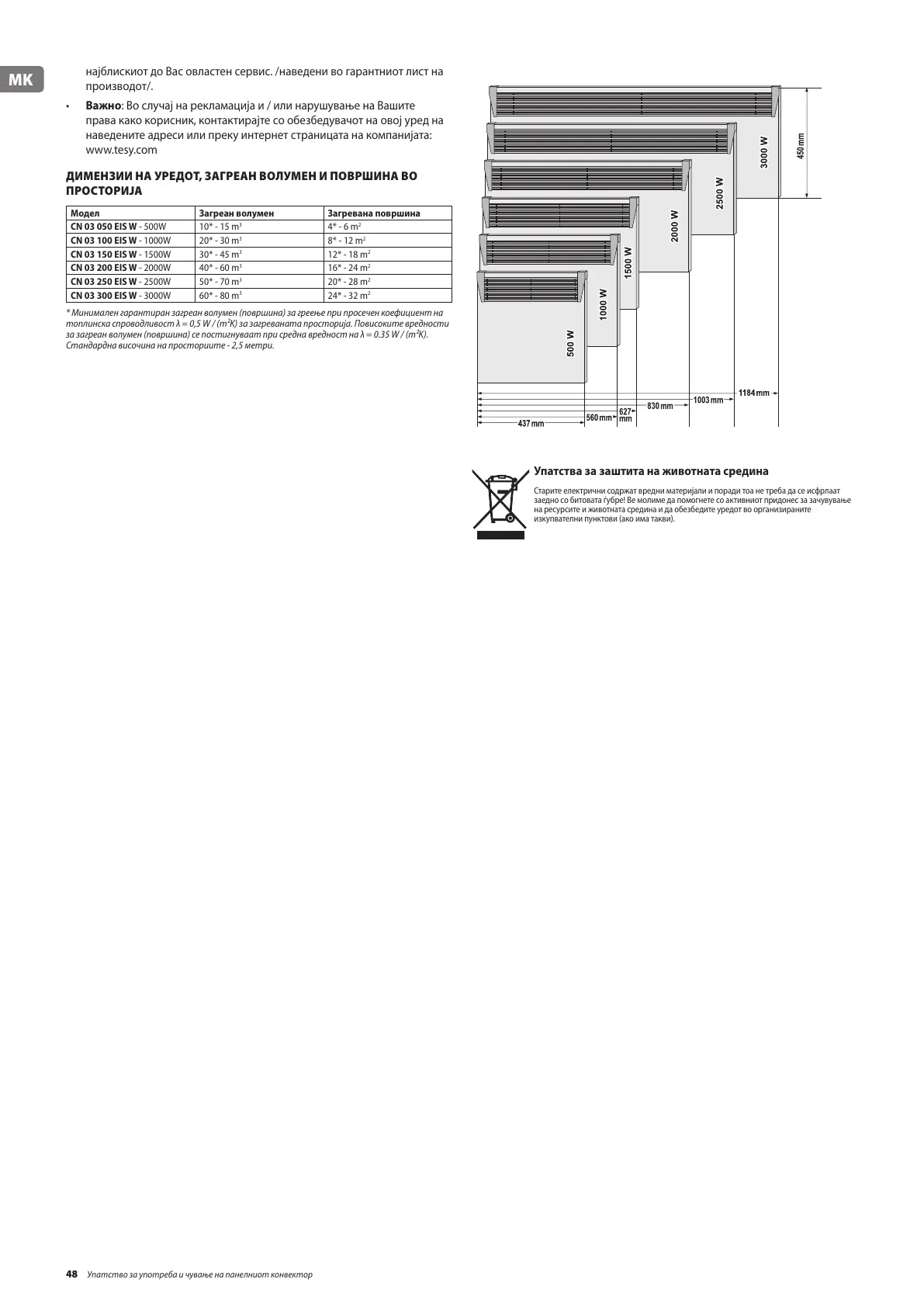 ДИМЕНЗИИ НА УРЕДОТ, ЗАГРЕАН ВОЛУМЕН И ПОВРШИНА ВО