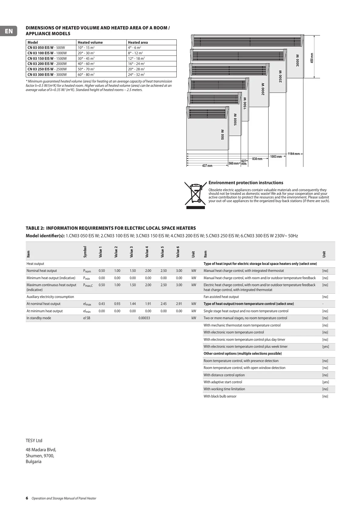 TABLE 2: INFORMATION REQUIREMENTS FOR ELECTRIC LOCAL SPACE HEATERS