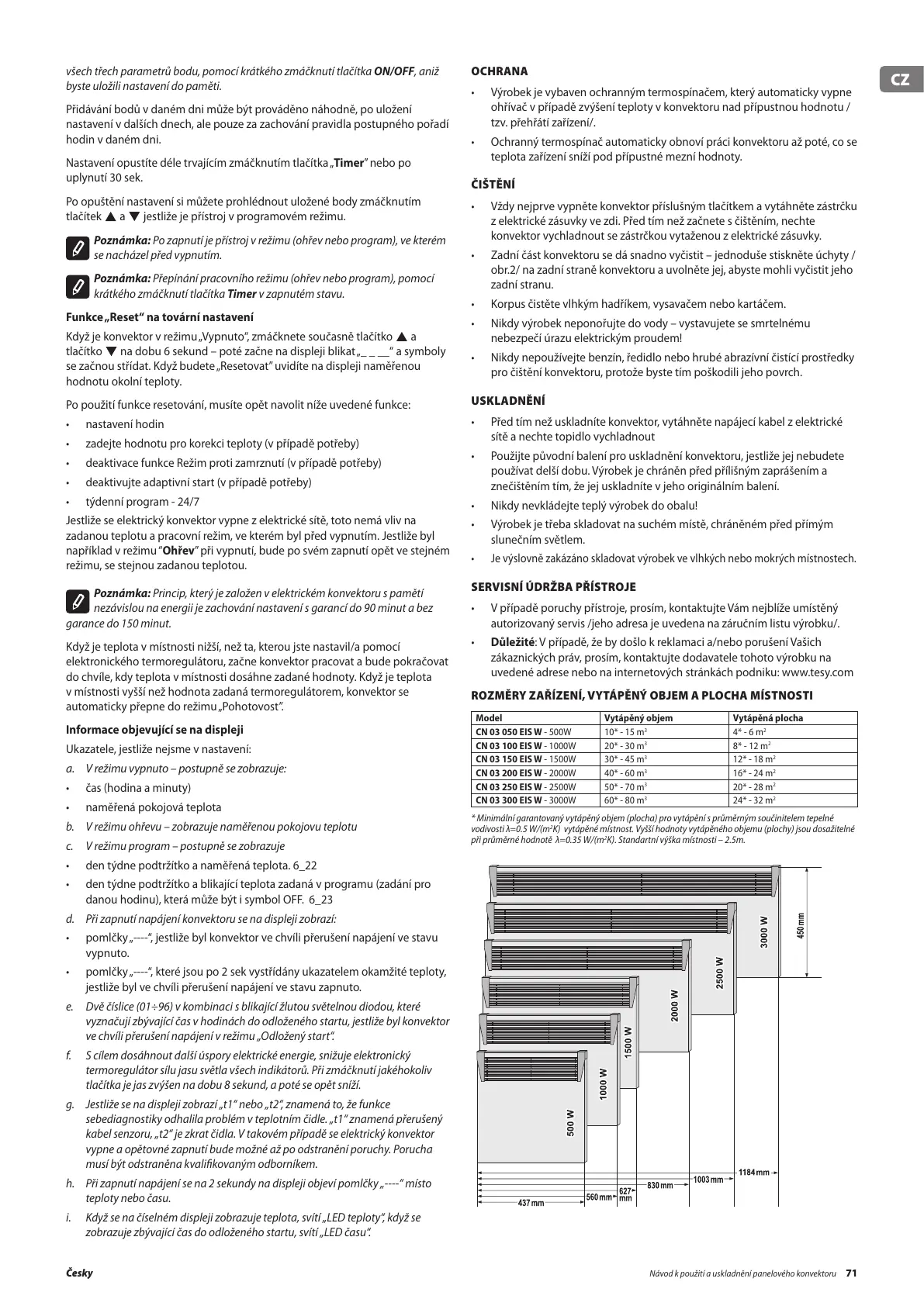 • Ochranný termospínač automaticky obnoví práci konvektoru až poté, co se