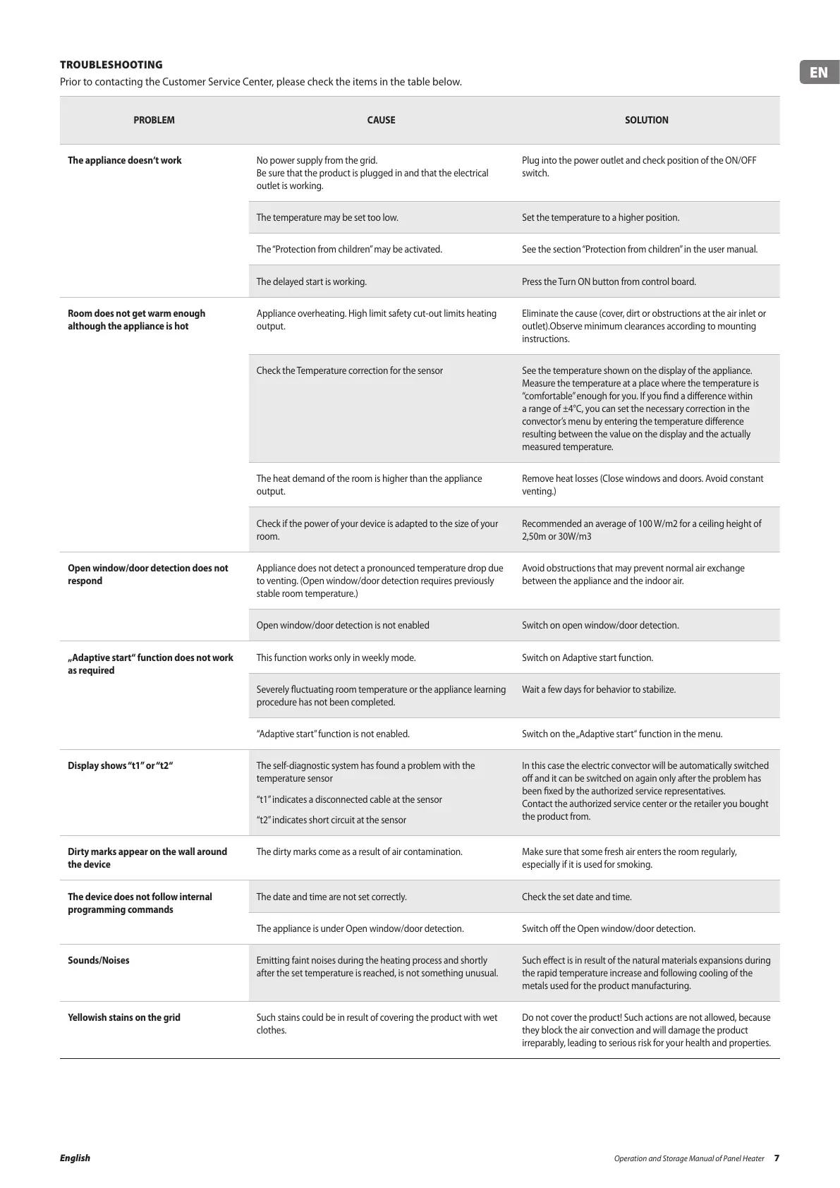 Display shows “t1” or “t2“ The self-diagnostic system has found a problem with the