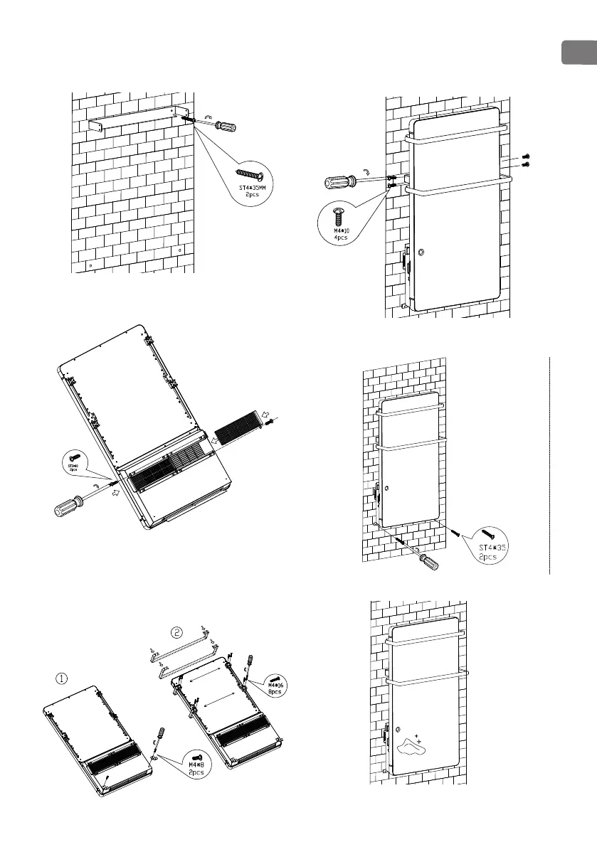 8. Fiksuokite pakabinimo Z-kabes ant sienos dviem