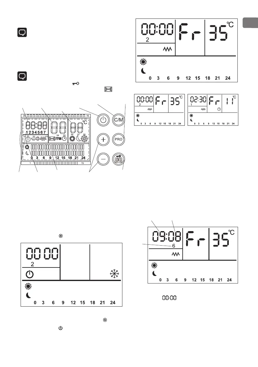 Ierīce ieslēgsies, ja temperatūra telpā kritīsies zem 7°C.