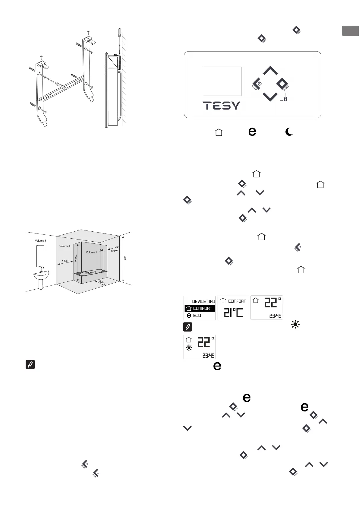 - Push the button “Mode” for 3 sec and select “Comfort mode” by