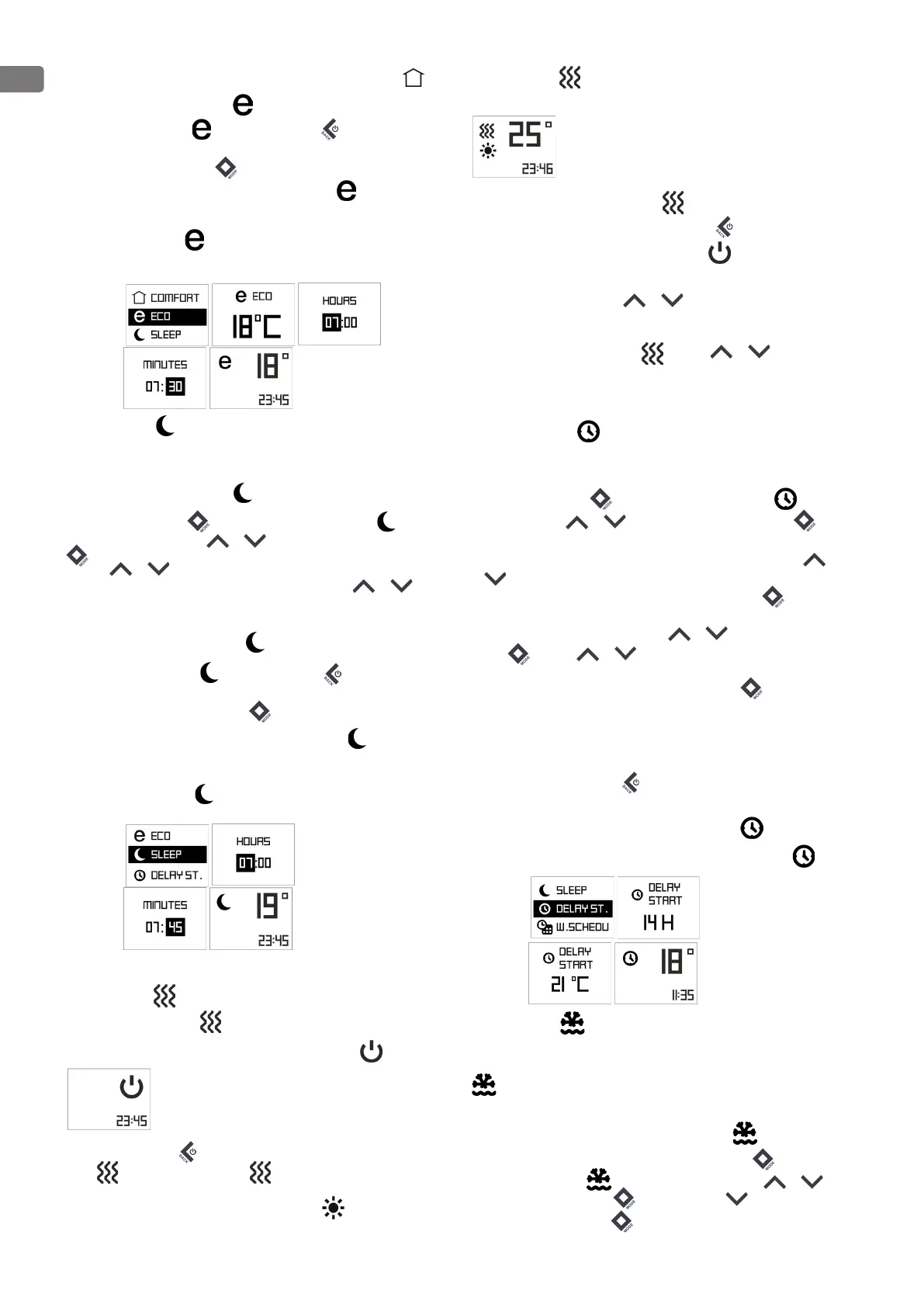 “Heating” mode. The “Delay start” needs to be set from 0 to 96 hours.