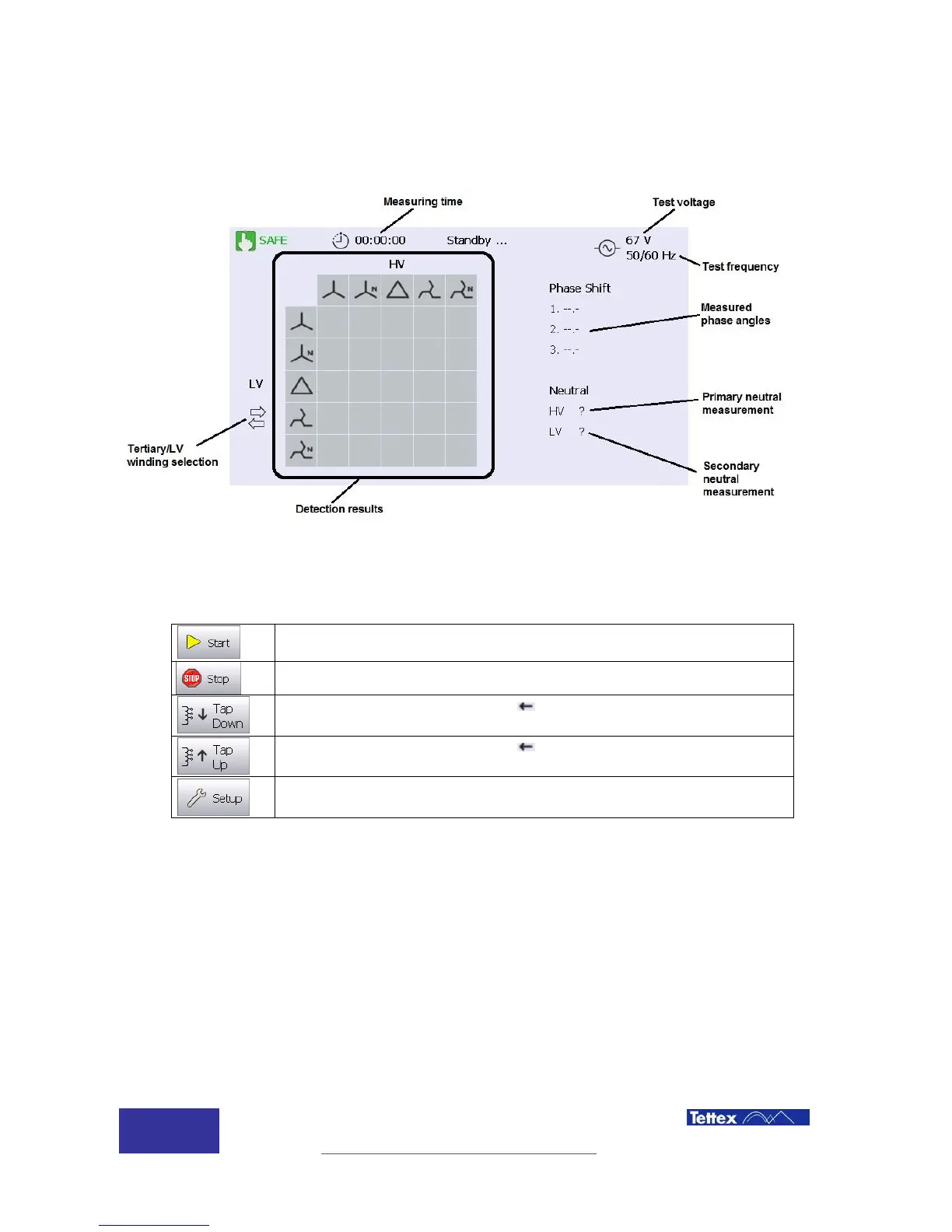 The detection function main screen components are described below.