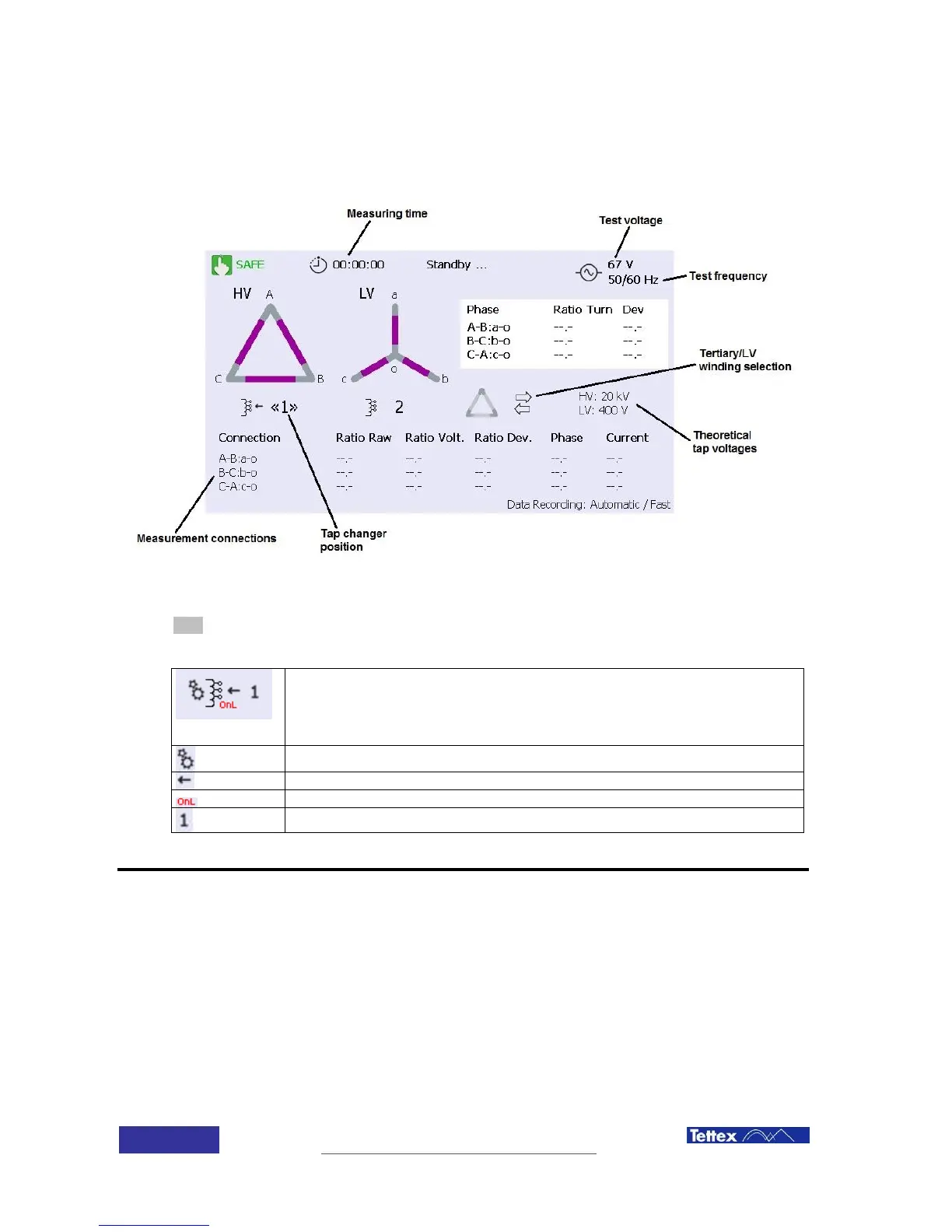 The turns ratio measurement screen is below described: