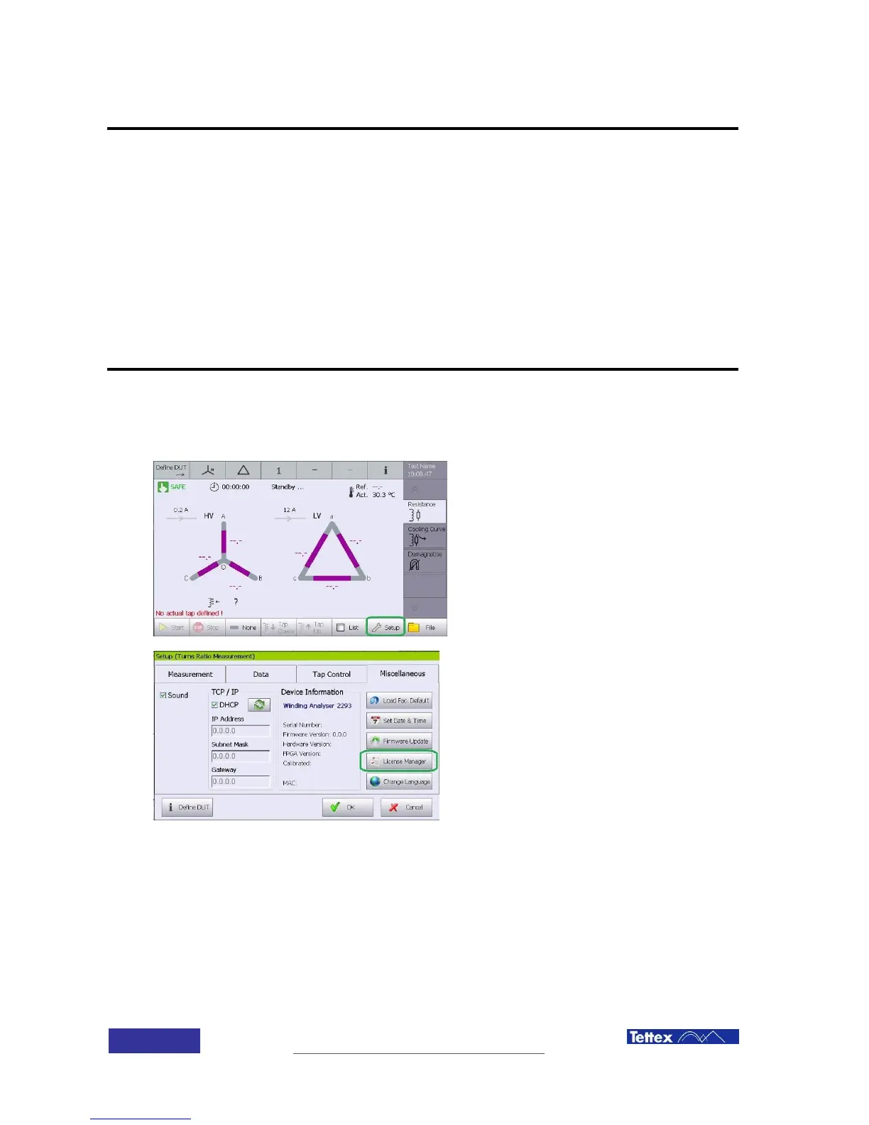 the license manager. This process only needs to be completed the first time turns ratio is used.