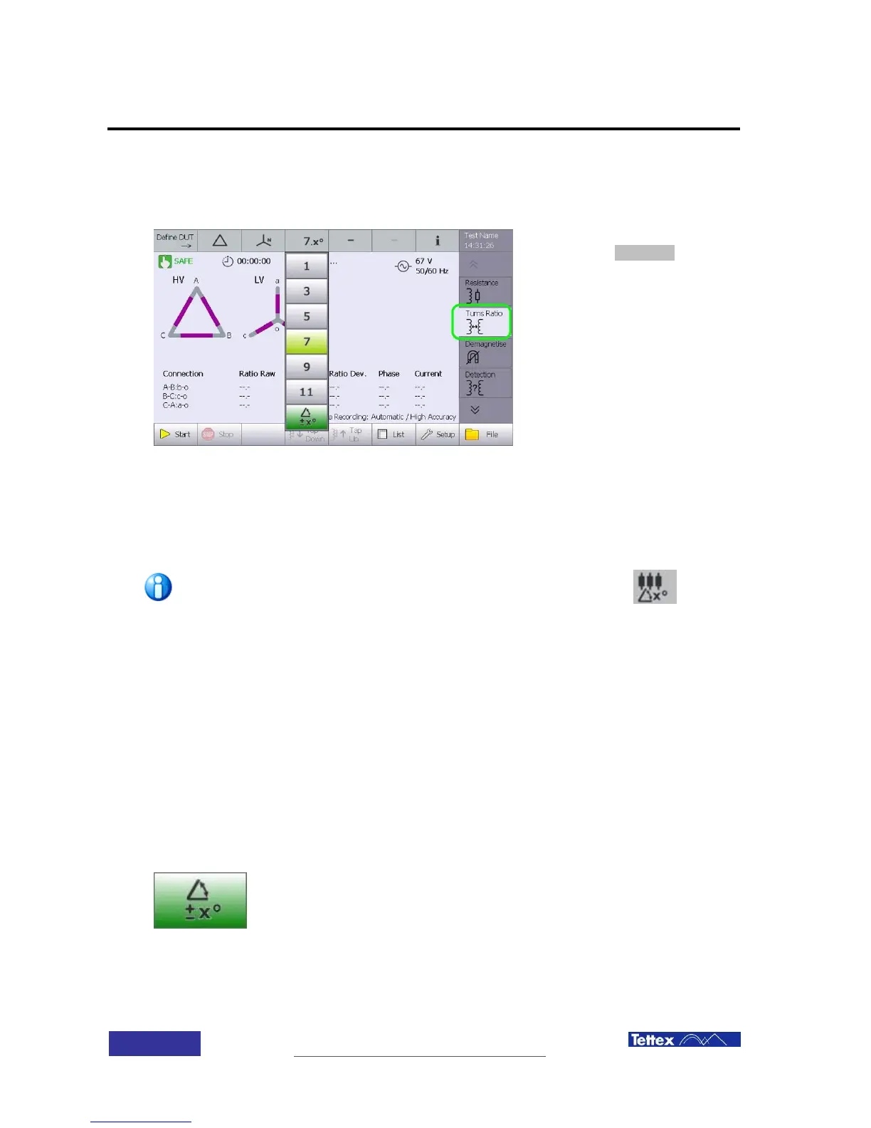 See the chapter Turns Ratio Measurement User Interface for information about the function keys.
