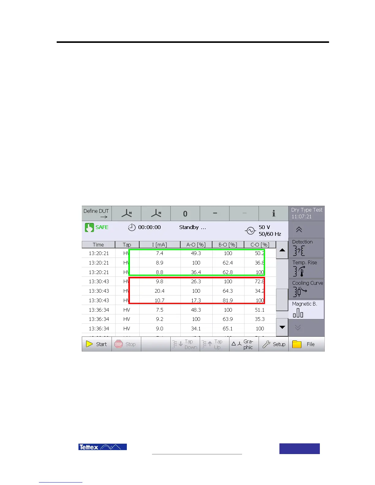 The lower results show a measurement with a magnetized transformer core (red box) Balance