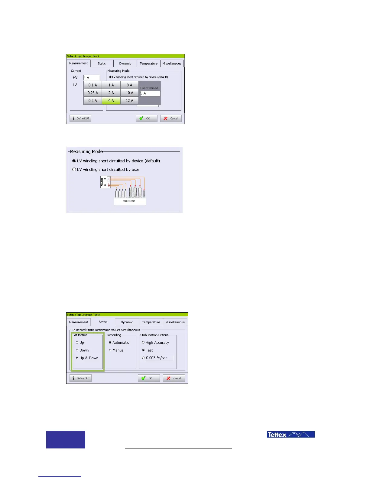 “Record static resistance values simultaneous”. If activated, after each tap change the instrument