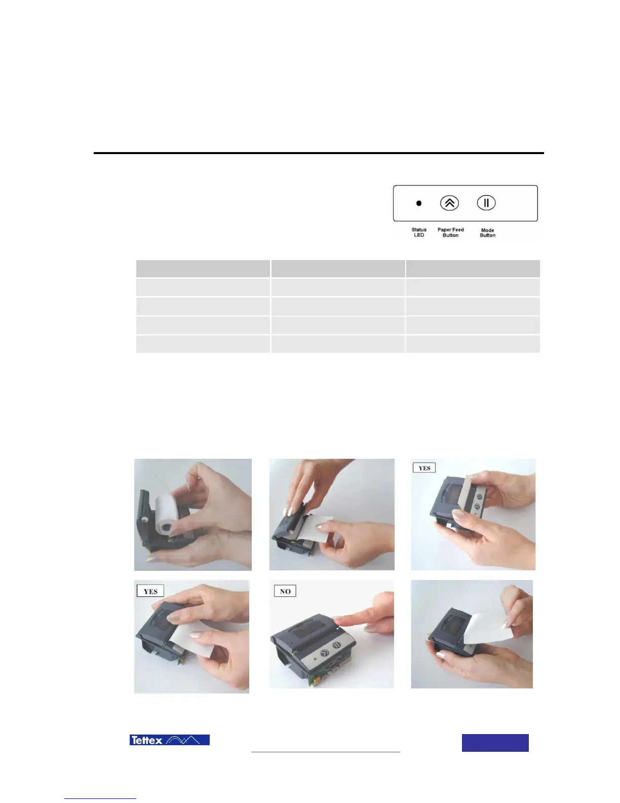 The printer automatically detects when the paper has run out and reports by blinking status LED.