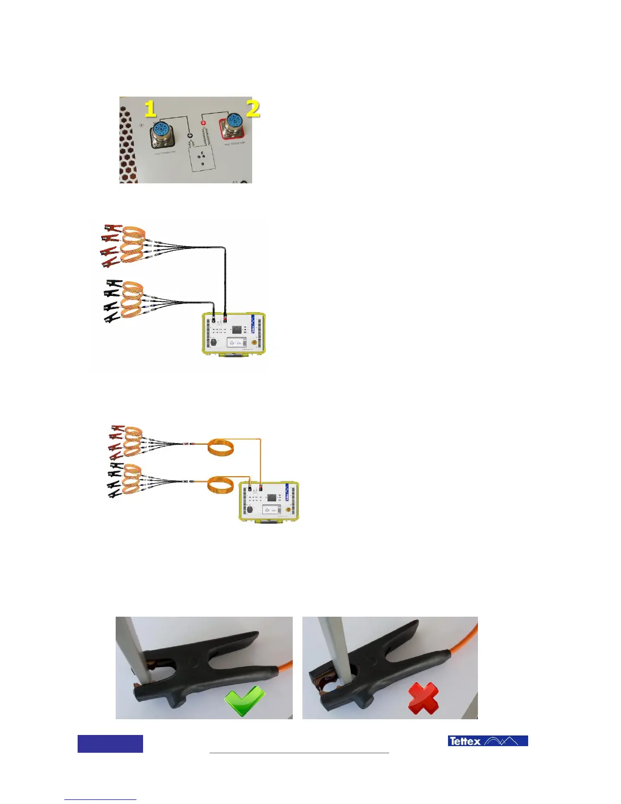 Make sure that you don’t shortcut the specially designed 4-wire measurement Kelvin clamp. Only