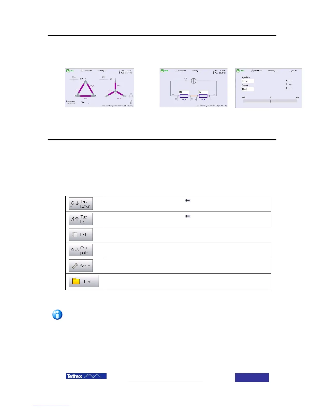 measurements, prepare setups or analyze test results. The buttons are case sensitive, i.e. they