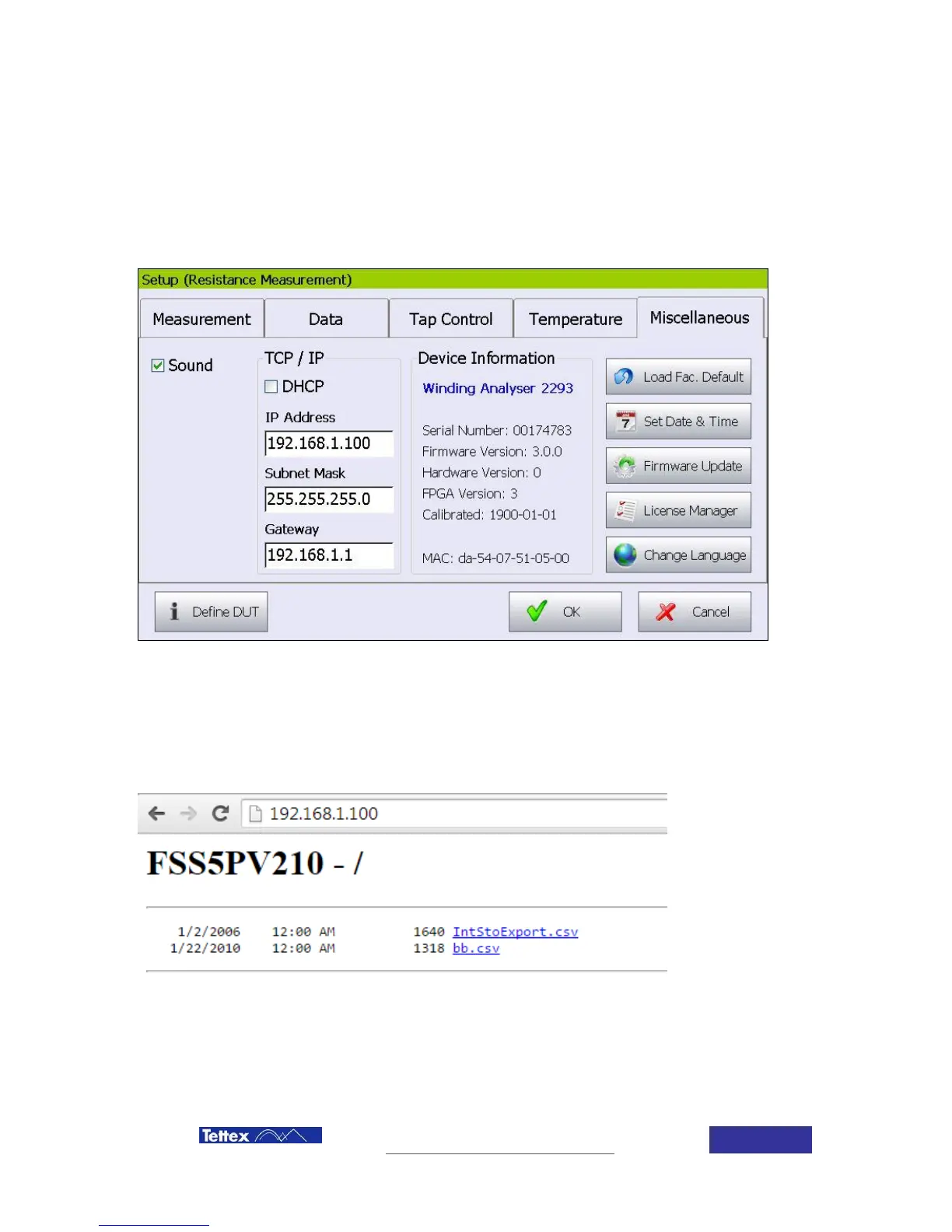 You can find the IP address configuration of your device in the “Setup” – “Miscellaneous” dialog: