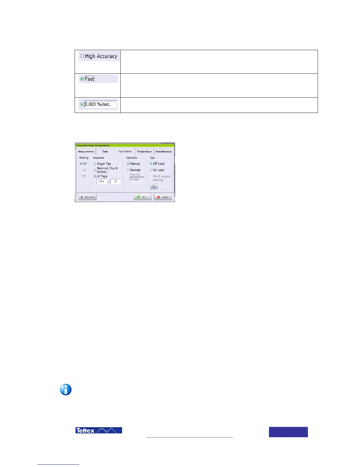 Example: When “All Taps” and “On Load” is selected the sequence is as follows: