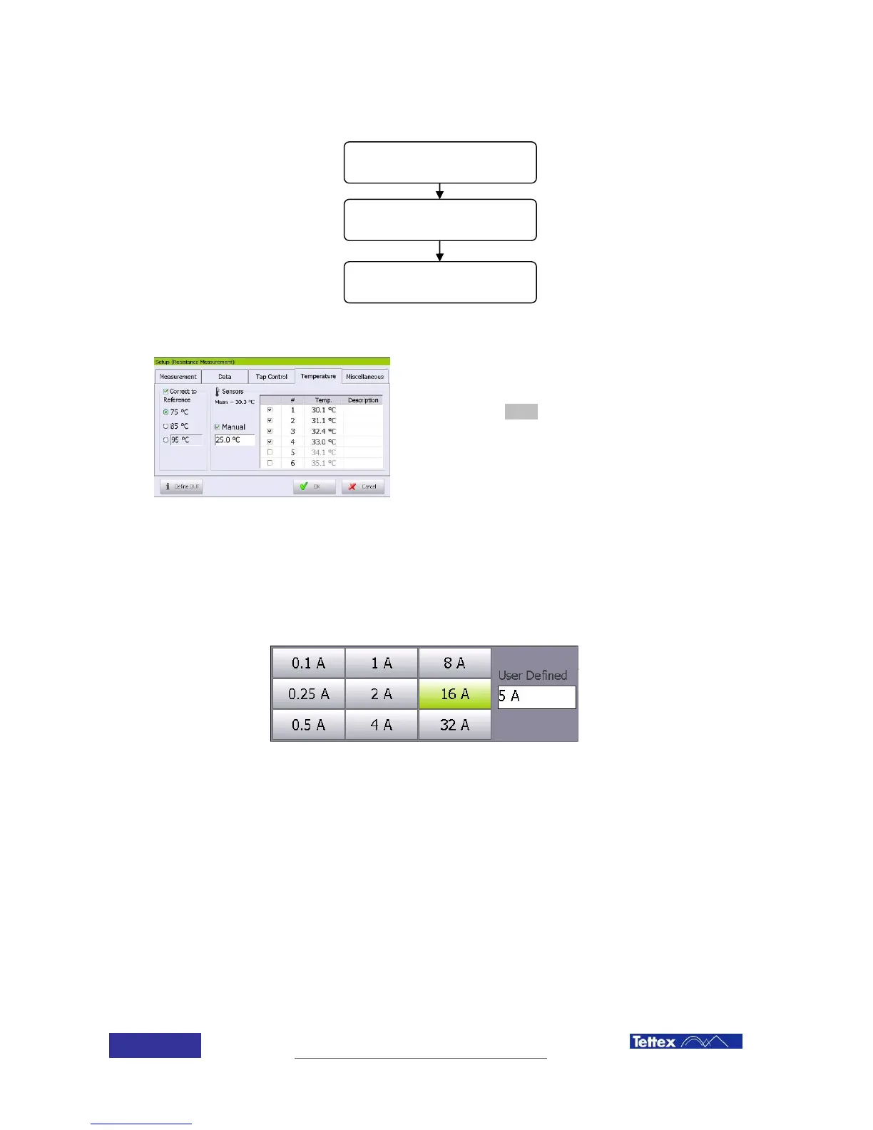 Selection of the measuring current is done by clicking on the test current field in the main screen,