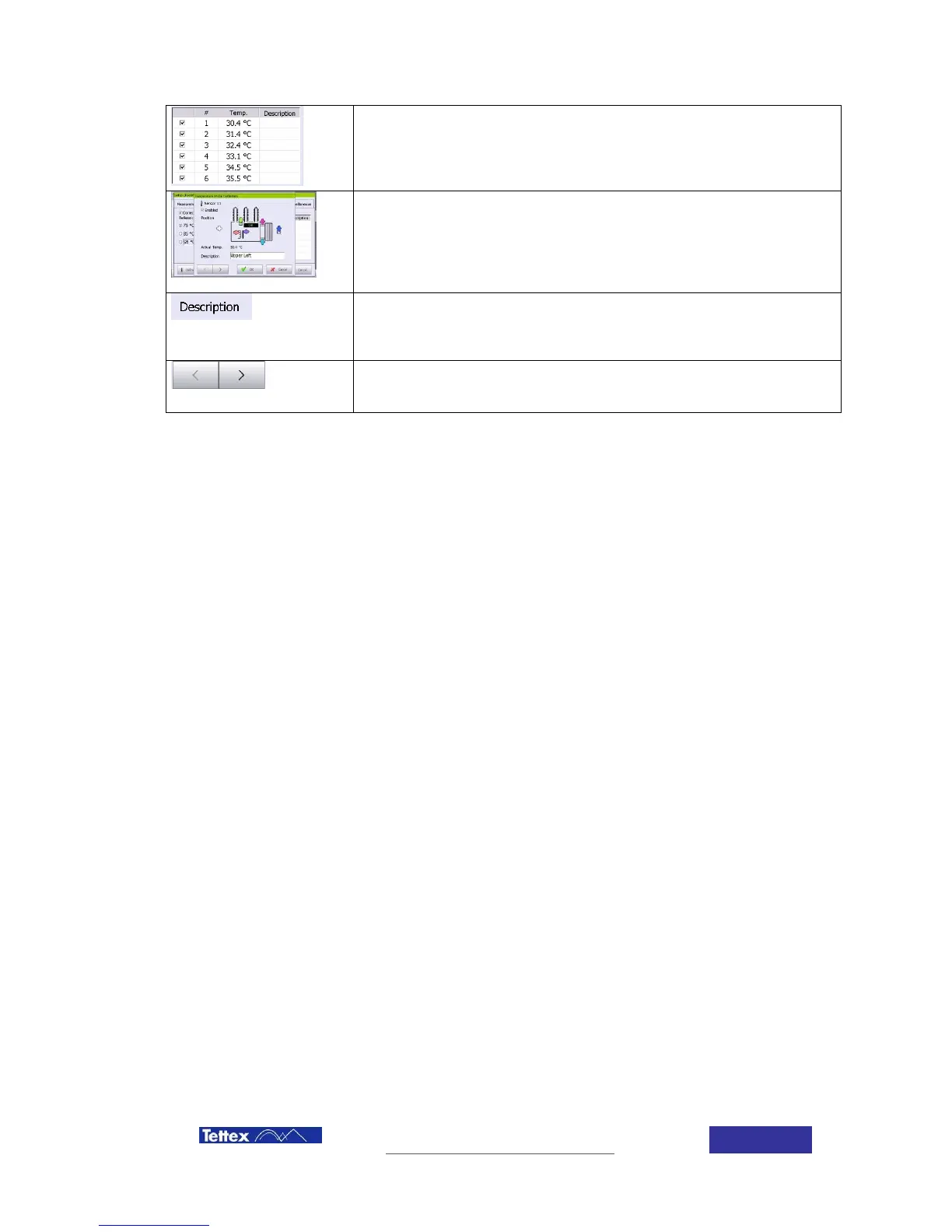 By clicking on a sensor line in this list you enter the temperature probe