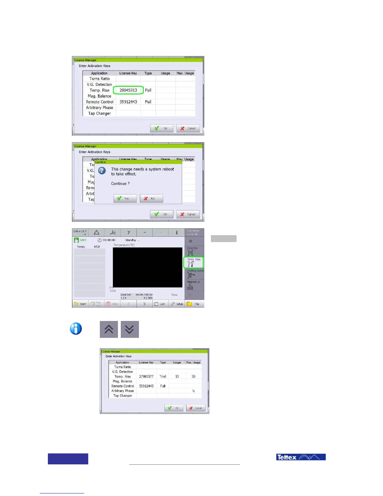 Enter the license key in the Temp. Rise box