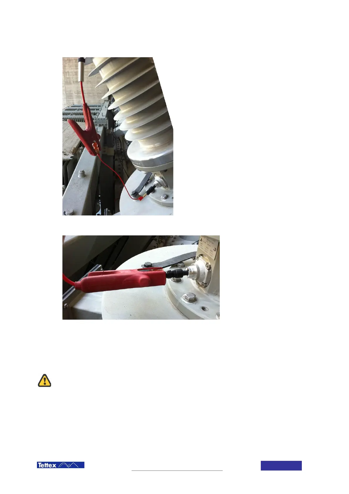 b) Connecting to a bushing test tap using the high voltage clamp.