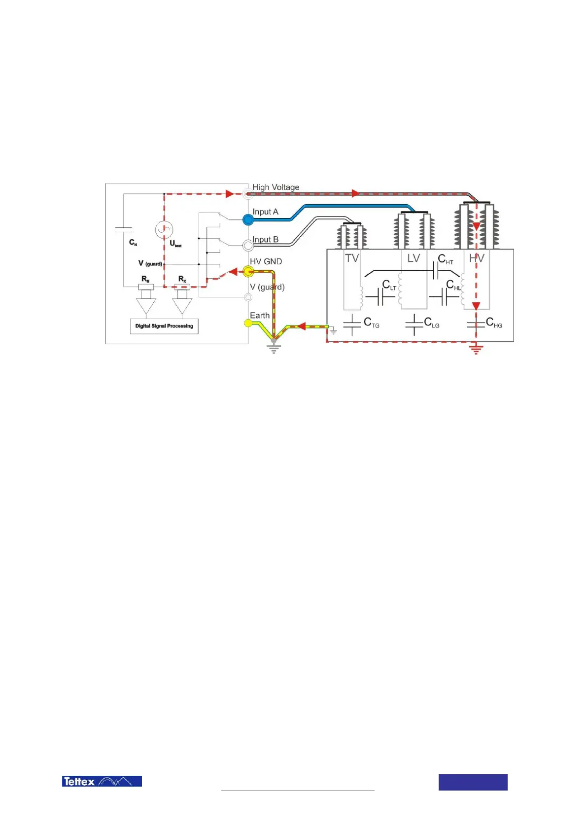 various winding groups and the transformer housing. The windings which are not used for measurement are