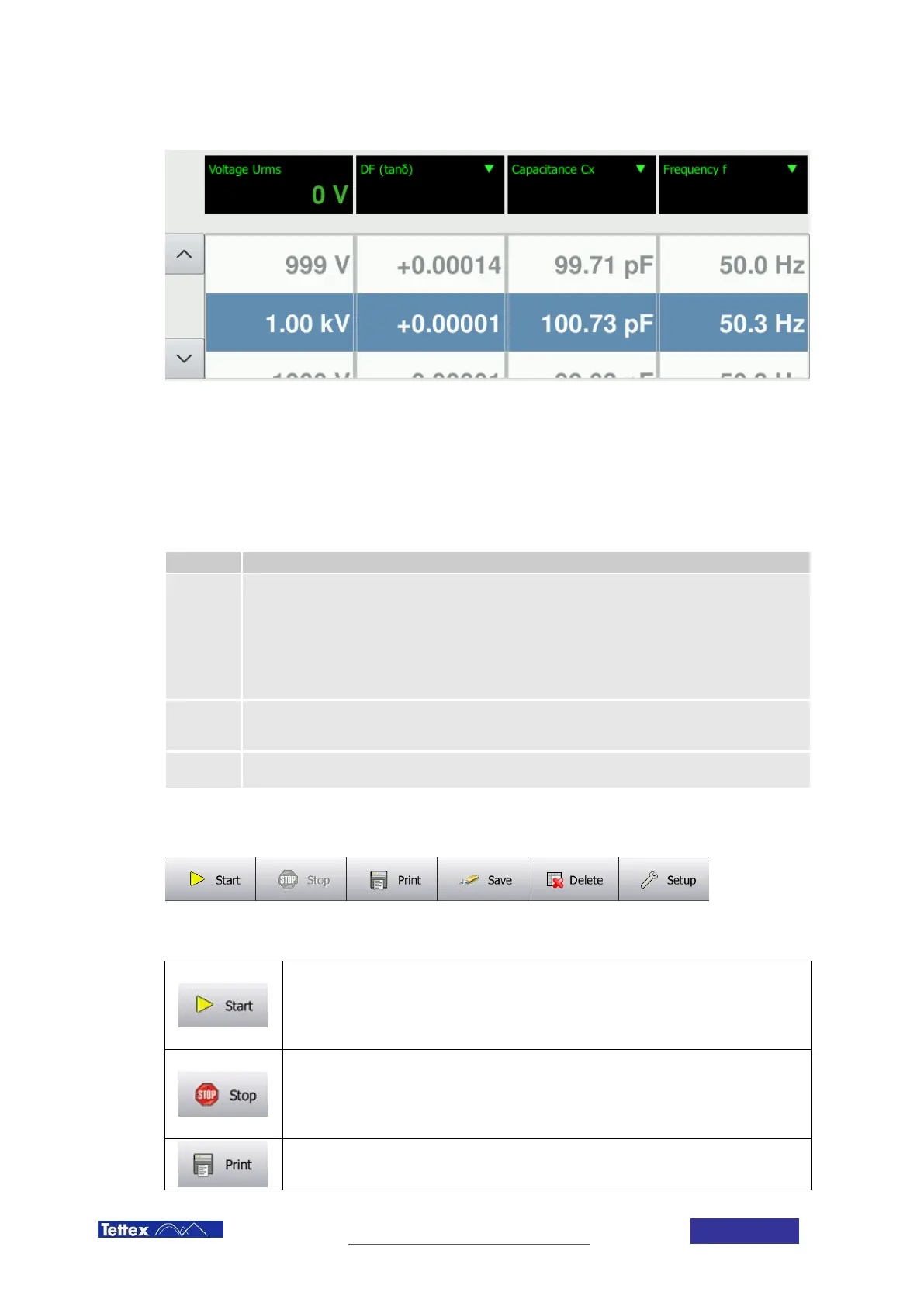 Starts the measurement with the parameters set in the test definition bar. When pressing