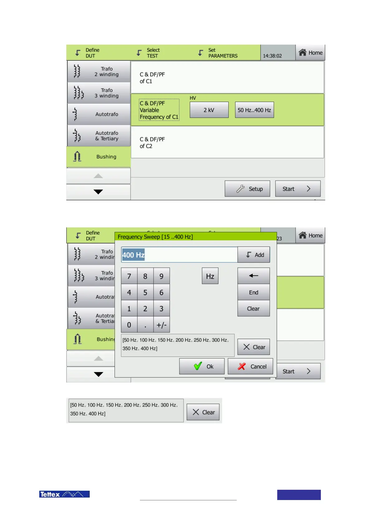 Sometimes more than one parameter is selectable. On the image above you can select the test voltage, as well as