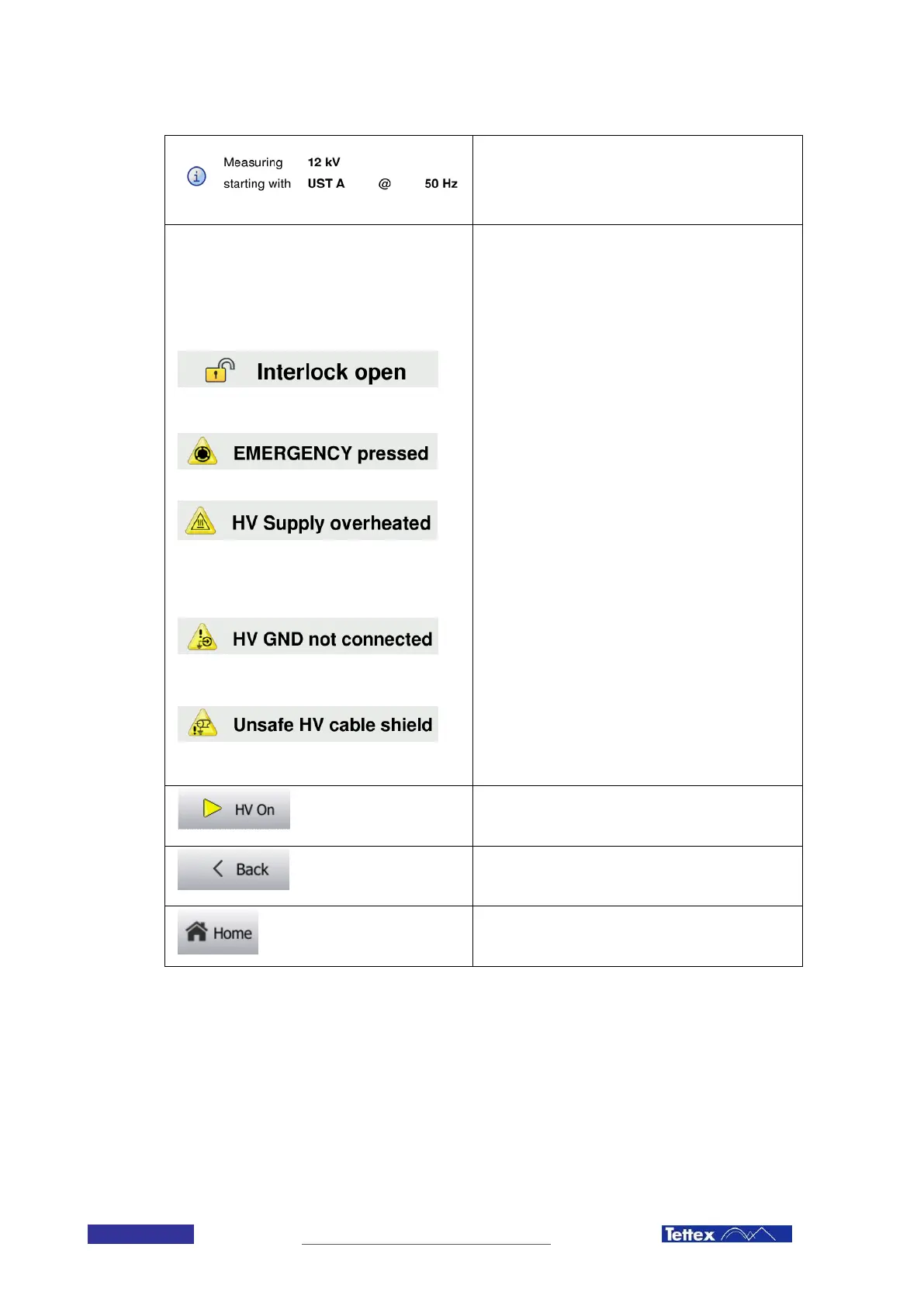 be performed. Voltage, test mode and frequency are