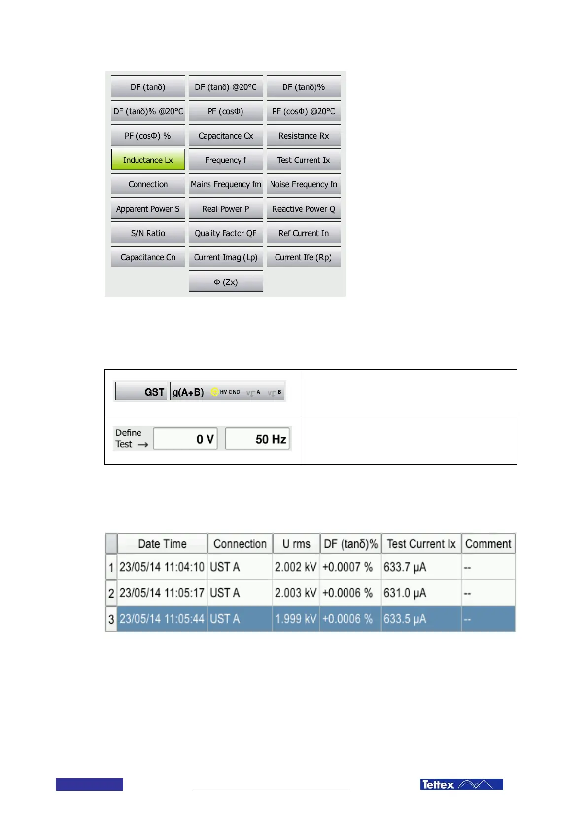 Define Test voltage and frequency by entering the