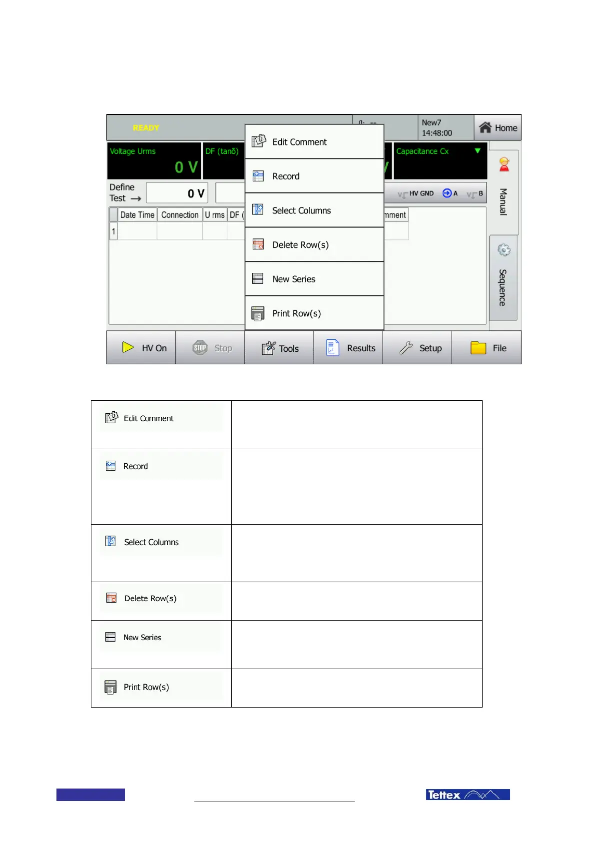 Records manually the current measurement values. Normally the