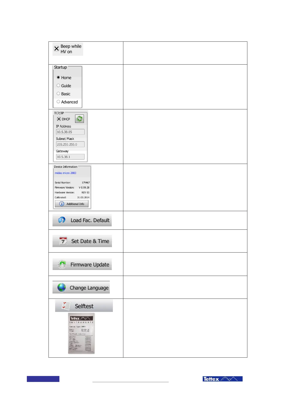 the safety elements. The user is guided through the test by on