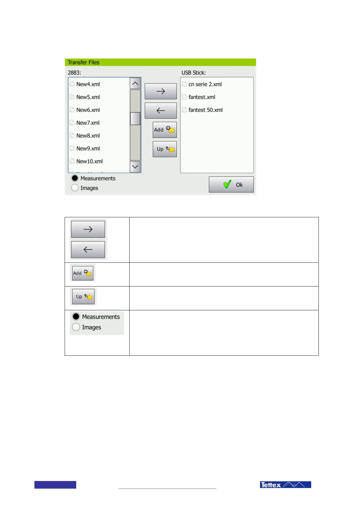 to the right) or from the USB Drive to the instrument (arrow to the left).