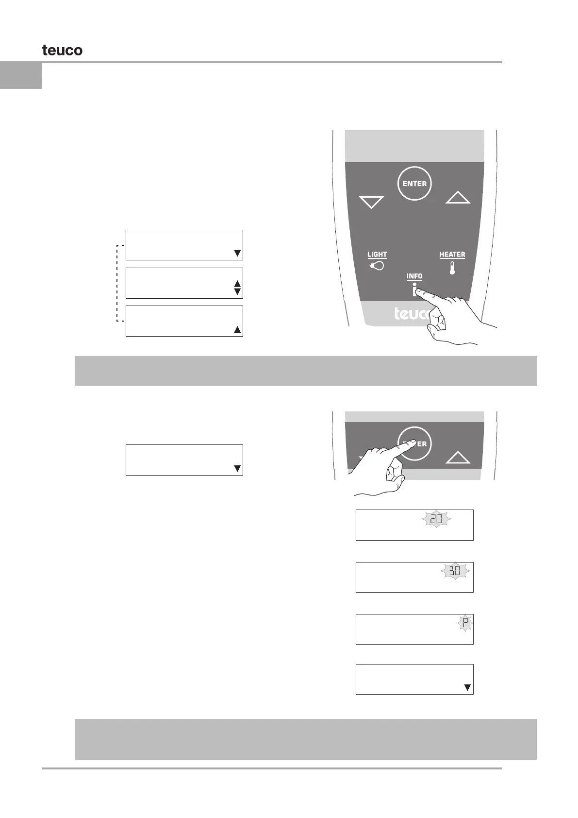 Teuco 266 - Réglages de LAFFICHEUR - INFO (HORLOGE - LANGUE)