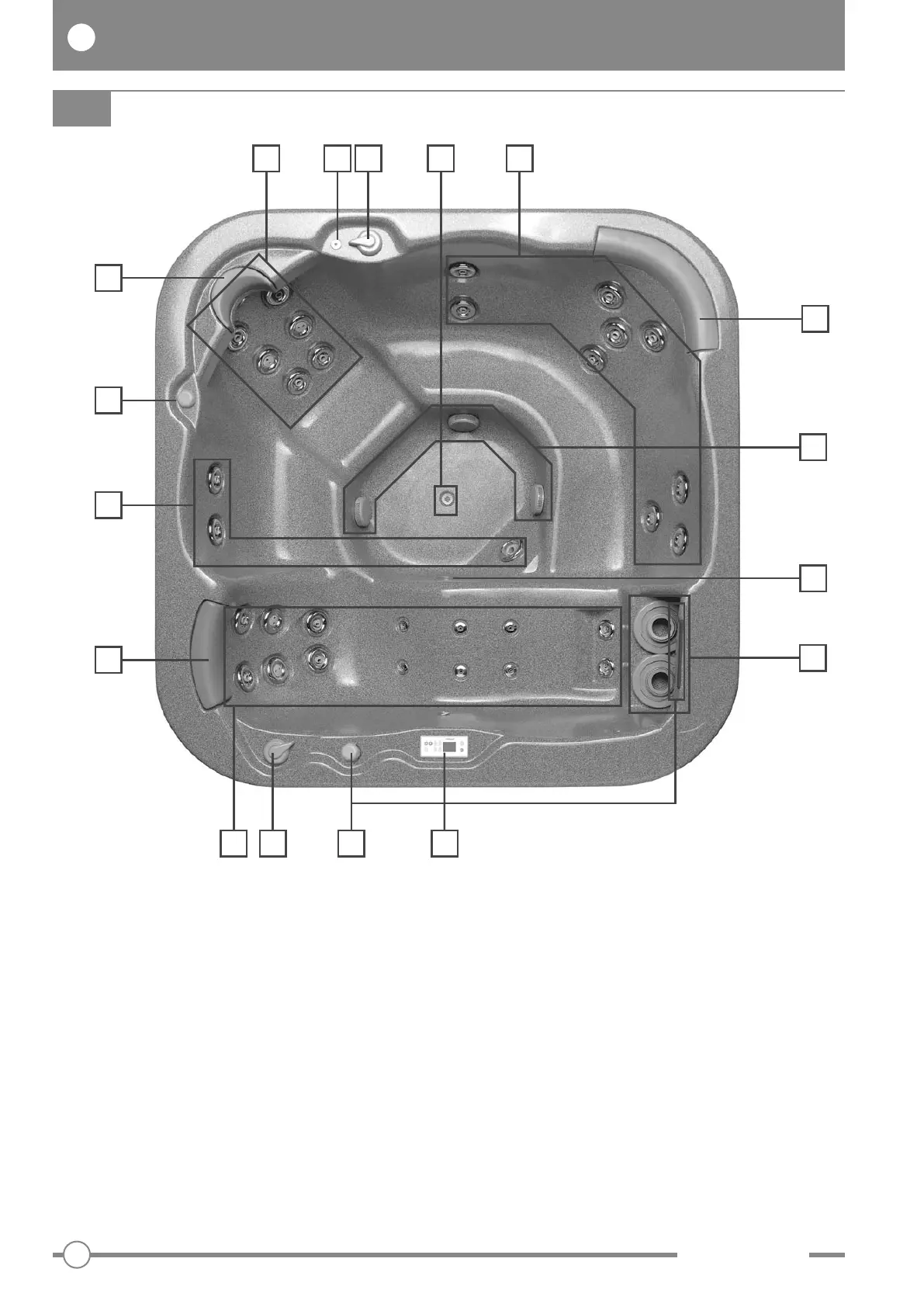 C - Stanowisko: Obejmuje 4 średnie dysze Medium Vector Jet oraz 2 dysze Rhythmic Jet na