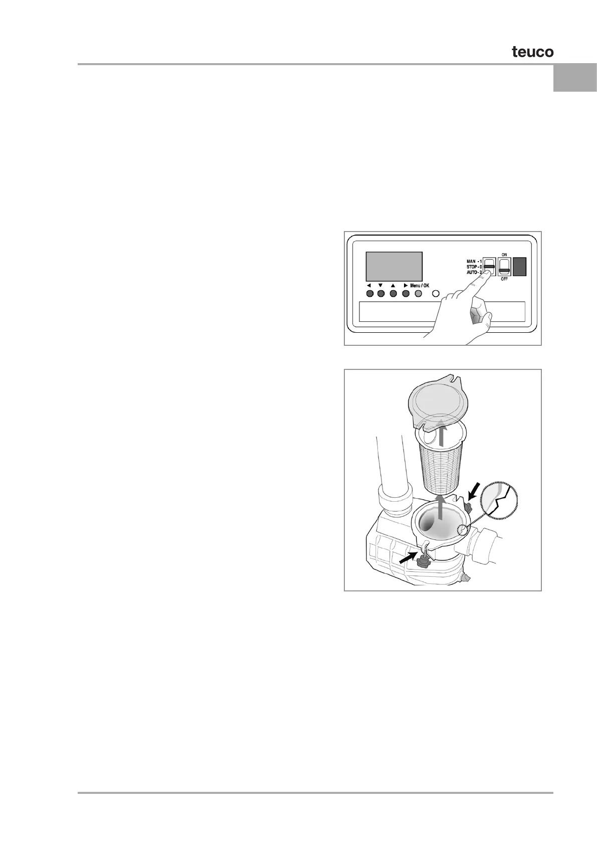 de schakelaar van de lterpomp op “STOP” te zetten.