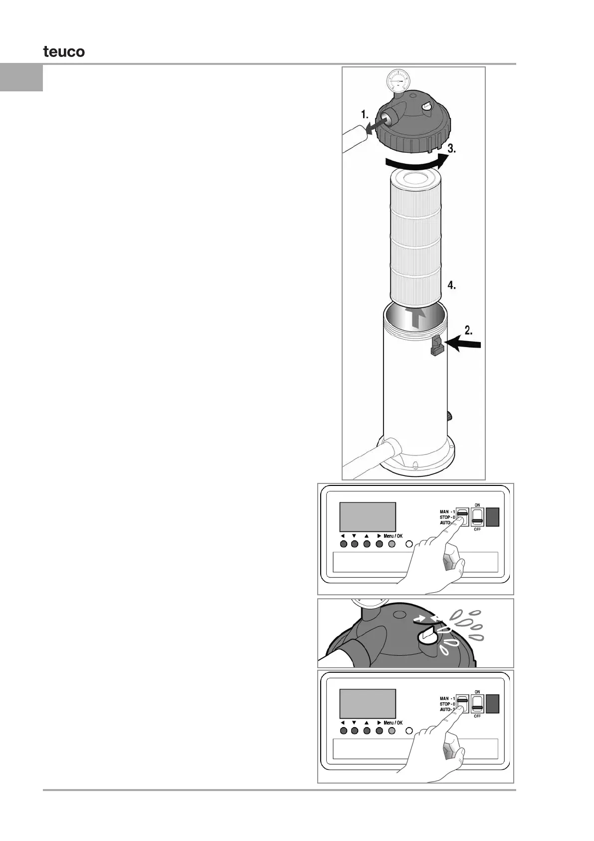 Włączyć pompę ustawiając na “MAN” wyłącznik na