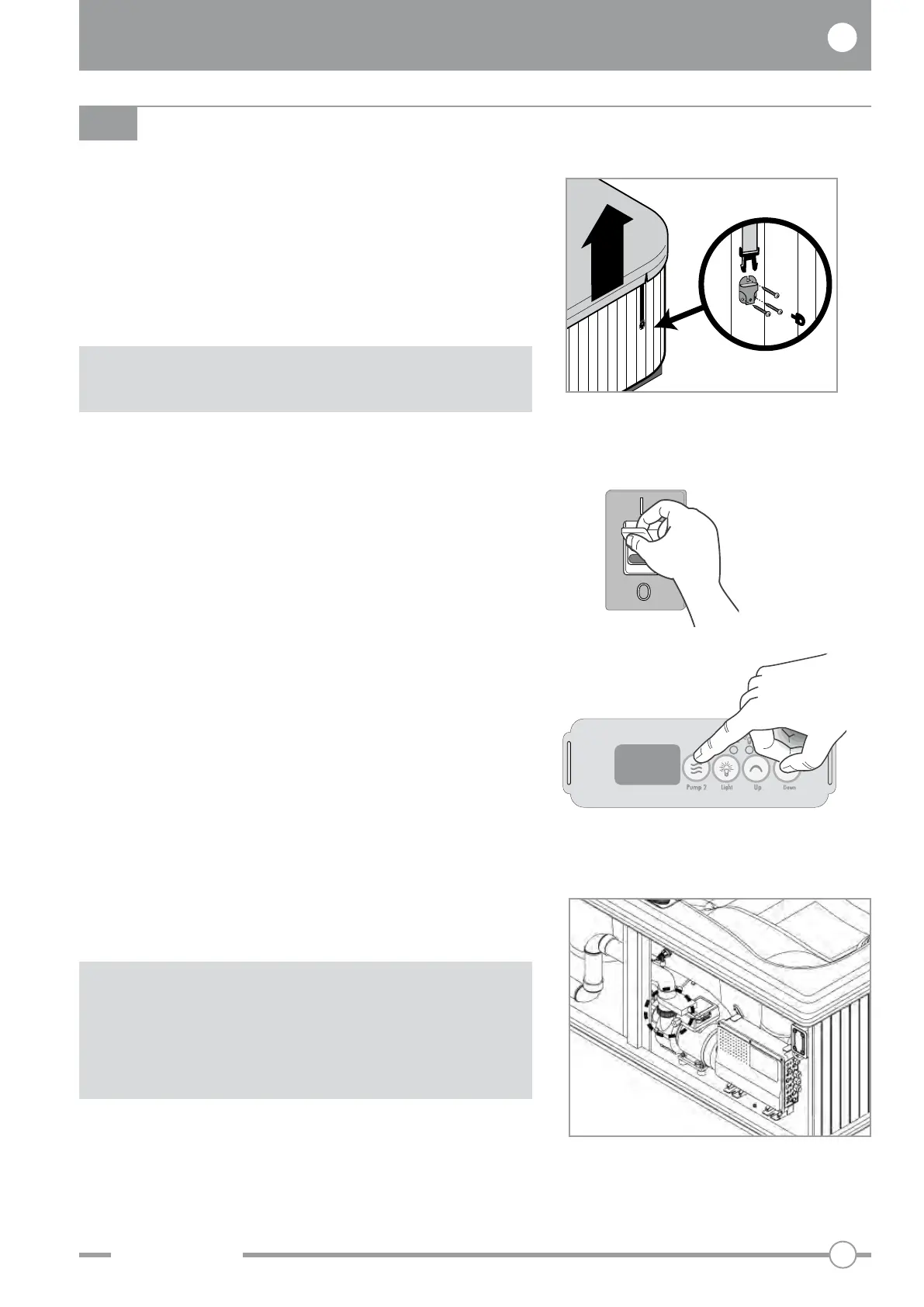 Switch on the hydromassage unit by pressing the “Pump”