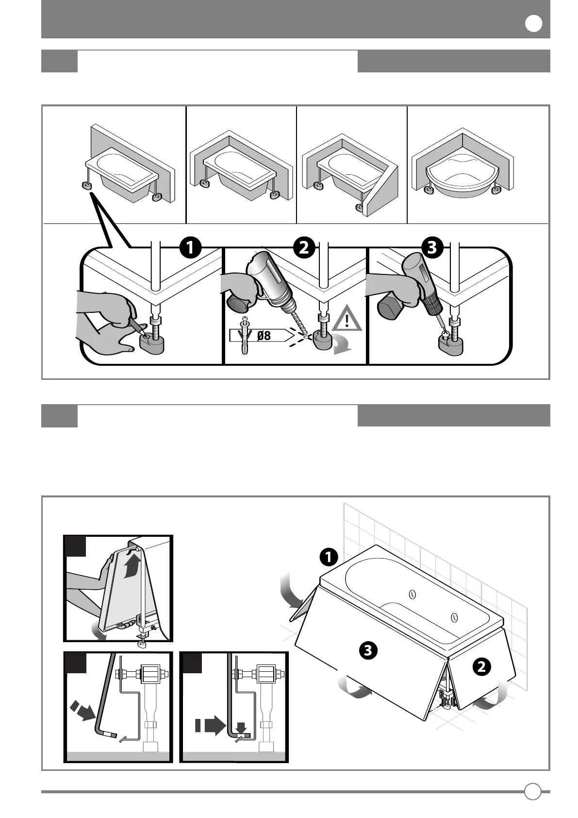Vasca con tre pannelli Vasca con due pannelli Vasca con un pannello Vasca da angolo