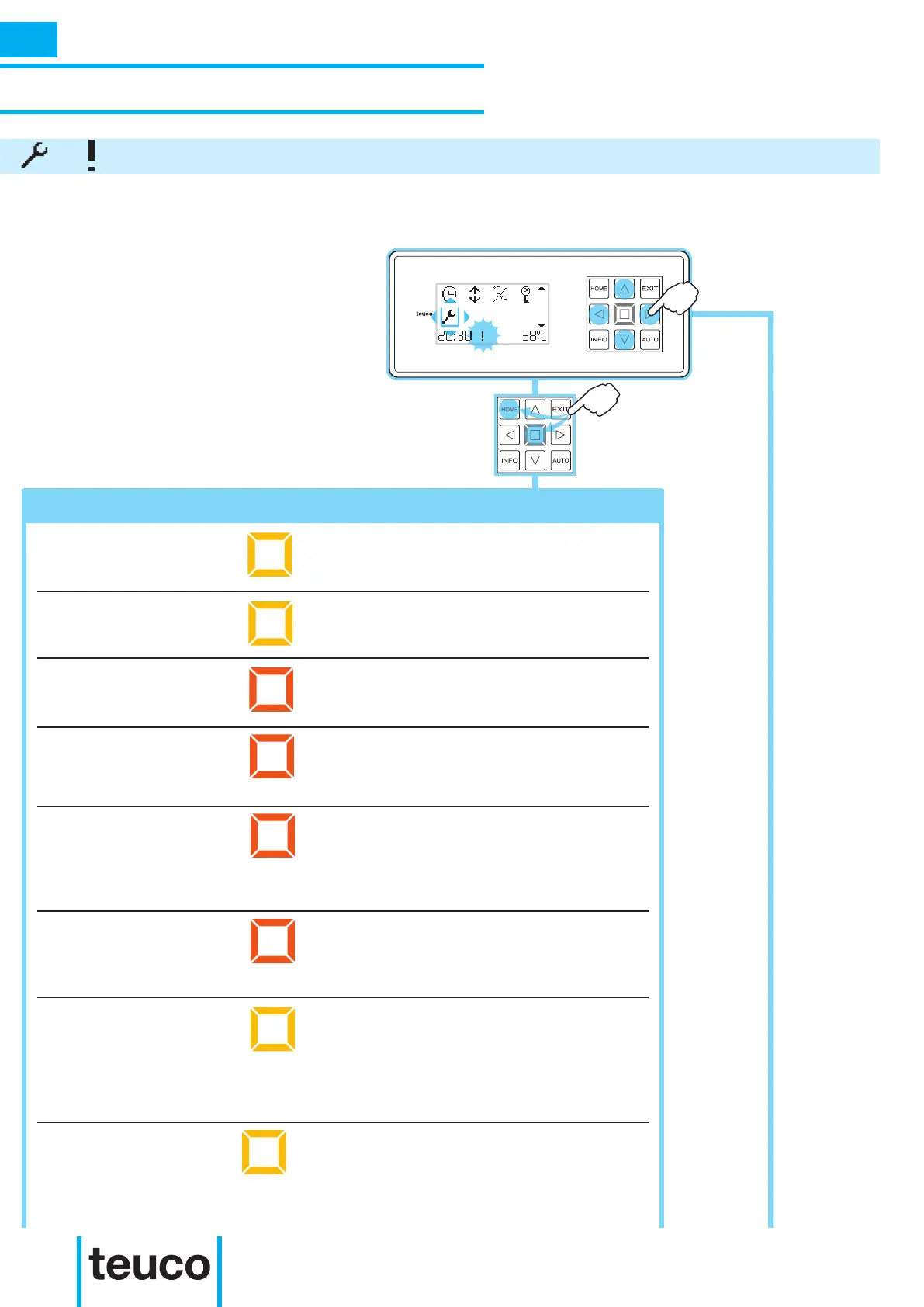 Bei Störungen der Anlage leuchtet die Taste mit dem Kranz auf und die Steuertafel zeigt im unteren Teil